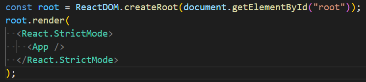 create-react-app을 이용하여 project를 생성하면 기본적으로 최상의 root element render 시에 StrictMode로 감싸준다.
